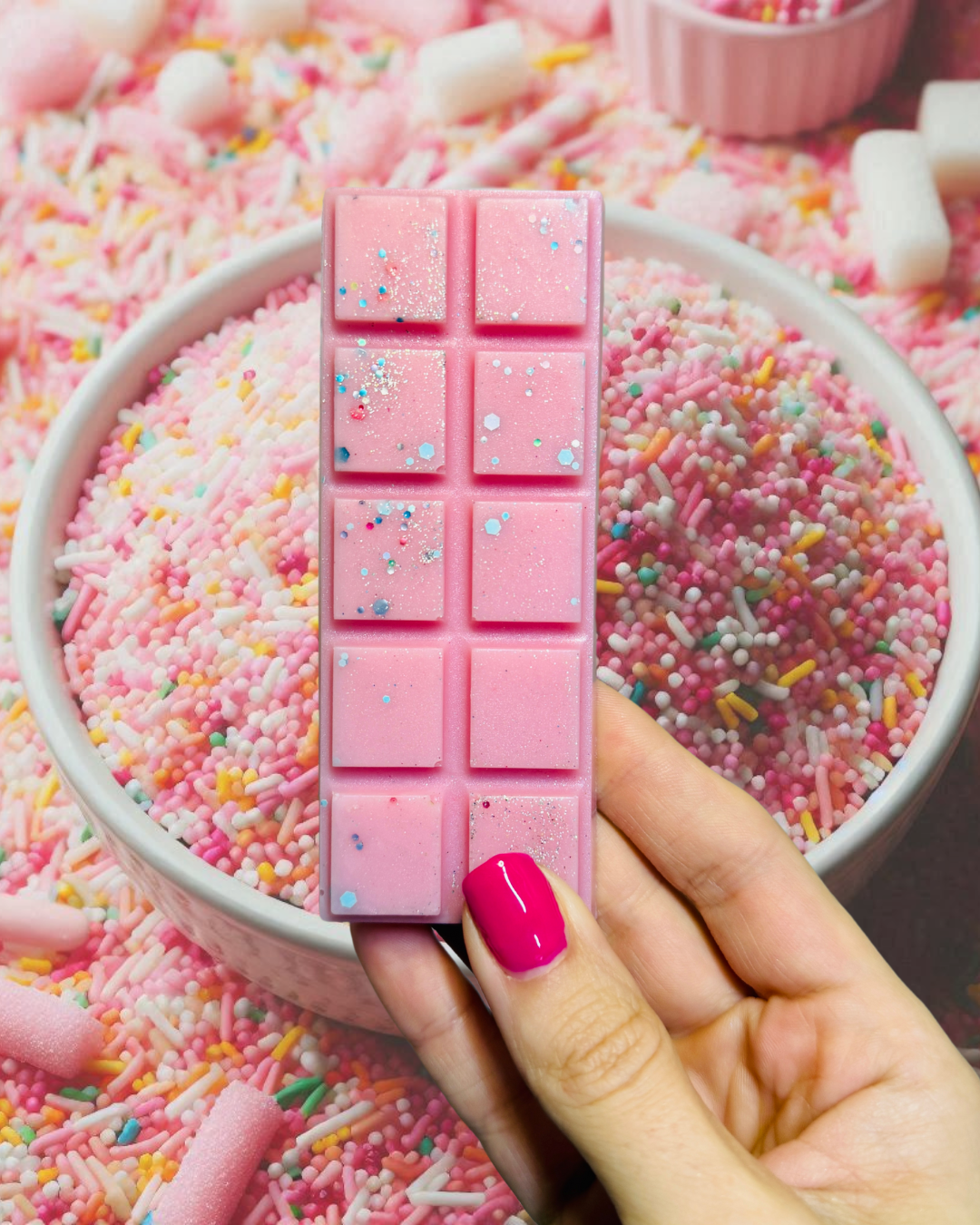 An accord of candy sugar sprinkles opening with notes of sparkling sweet lemon, hints of pink rose, soft fruits and a trail of crunchy sugar crystals, creamy vanilla, with a nuance of Tonka and powdery musks.